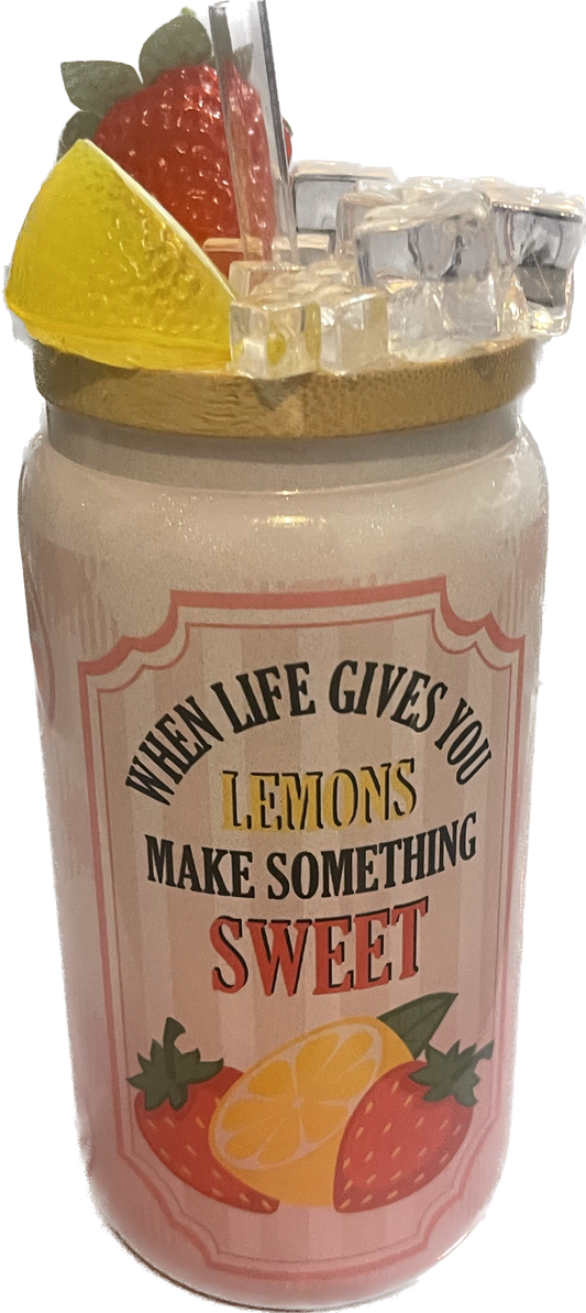 When Life Gives You Lemons Make Something Sweet- 16oz Glass Libbey Beer Can Cup with Bamboo LidRegular price $25.00 USDRegular priceUnit price / per-